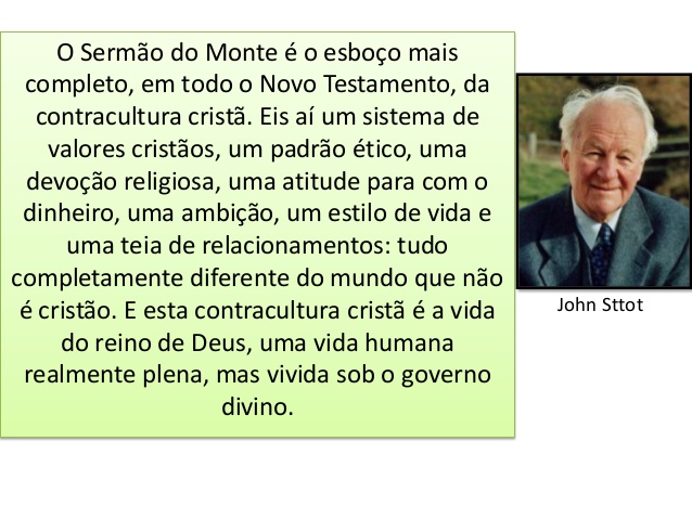 É possível identificar qual o padrão do Reino de Deus para assim o buscarmos numa atitude de vivê-lo. Neste sermão encontramos o padrão de Deus para a vida de seus servos em contraste com os que não são. De acordo com Sttot (1981, p.9):